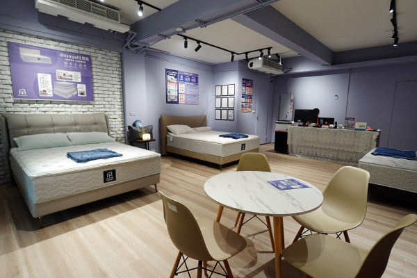 民生東路的門市佈置得溫馨很有質感,一走進門市,我們就感受到dreampal品牌有夠用心, 一樓有三張雙人床,地下室也有展示單人床及電動沙發。