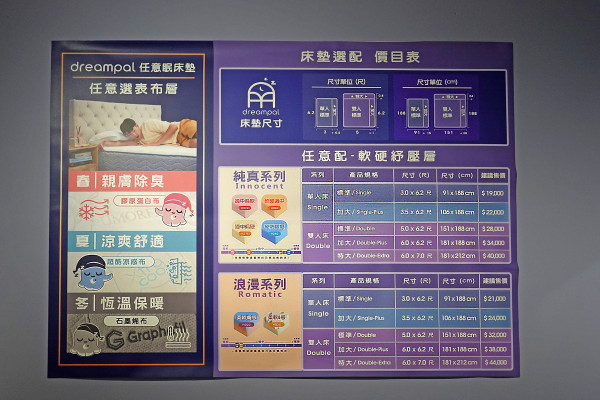 任意眠門市試躺dreampal任意眠床墊 ,三種表布+左右不同硬度拼接設計,量身訂做床墊任意眠評價