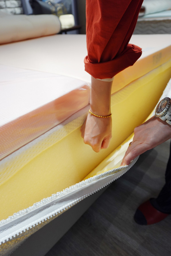 店員說他們是有超過40年醫療床領域經驗的專業團隊,從醫療床墊跨足日常床墊,難怪在床墊的支撐、彈性調整這塊特別講究。重點是整張床墊的結構都非常透明, 每張床墊都有拉鍊可以打開來看裡面的材料!