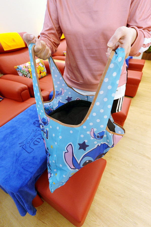 店家會先遞上一個大容量的可愛卡通防水手提袋,讓人能把隨身衣物和包包通通裝進去。這個袋子不僅造型討喜,重點是可以隨身帶著走,完全不用擔心私人物品離開視線,讓人在享受按摩時更有安全感。