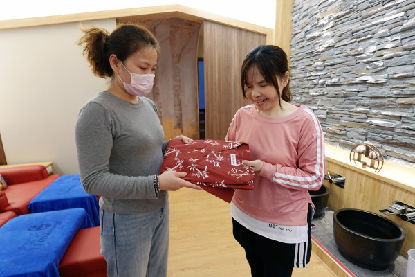 店家會準備專屬按摩服,這套衣服採上下身分開的設計,穿起來非常方便,造型更是像極了優雅的日本浴衣。換上它的瞬間,視覺上彷彿一秒來到京都,整個人不自覺地就切換到了度假放鬆的模式。