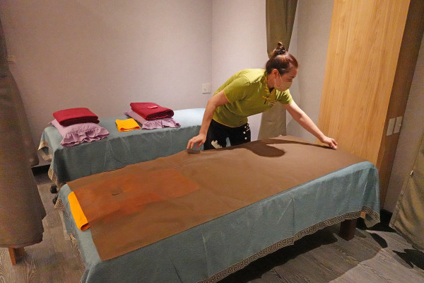 說到衛生細節,這裡真的做得很到位,每一張按摩床都會鋪上全新的不織布床單,確保妳接觸到的每一寸都是最乾淨的狀態。最讓人安心的是,只要客人一做完,服務人員就會立刻收走更換,這種一人一套的堅持,讓人在趴下去的那一刻完全不用心理建設,只有滿滿的潔淨感。