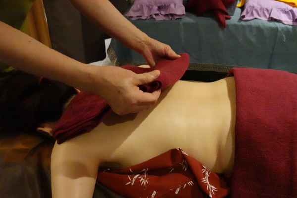 結束前師傅會用厚實的毛巾進行熱敷,那股熱氣滲透進剛按摩完的肌肉裡,感覺全身的毛細孔都張開了,熱敷不只能幫助殘餘的乳液吸收,更能透過溫度的加持,讓原本就很放鬆的肌肉達到極致的舒緩狀態。