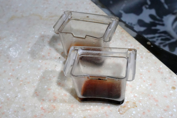 最後只要用清水沖一下,甚至連刷子都不用拿出來,集油杯就清洗德乾乾淨淨了。