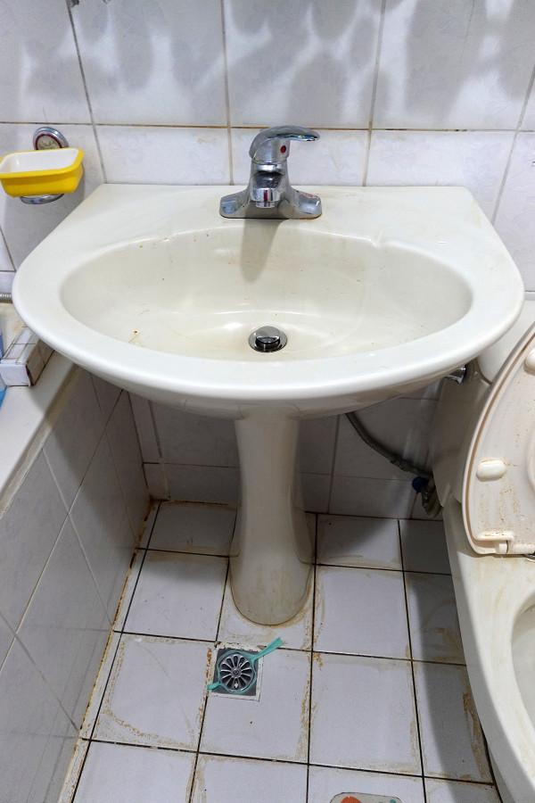 還有洗臉盆跟浴室地板,因為潮濕的關係,也很容易卡一層灰灰黑黑的髒垢,看了就渾身不舒服。