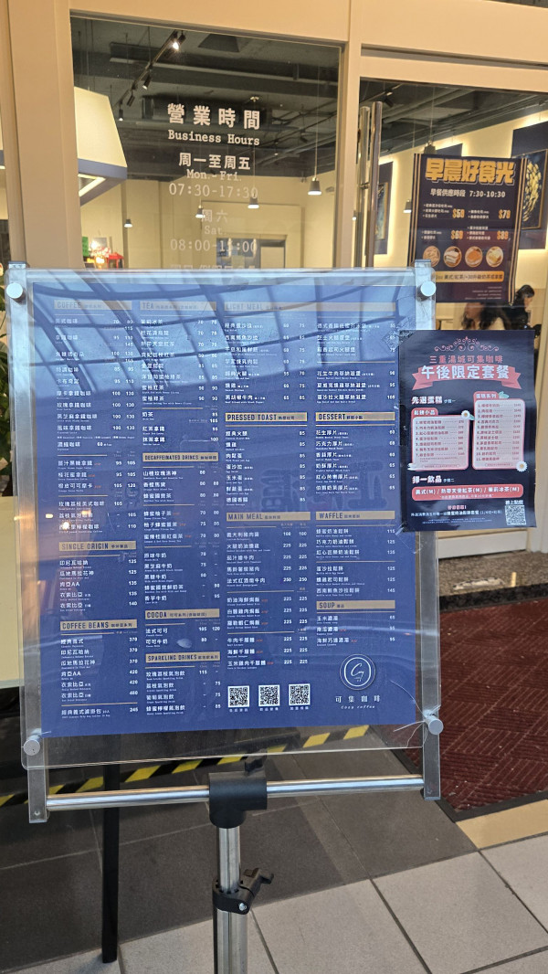 可集咖啡湯城店菜單。
