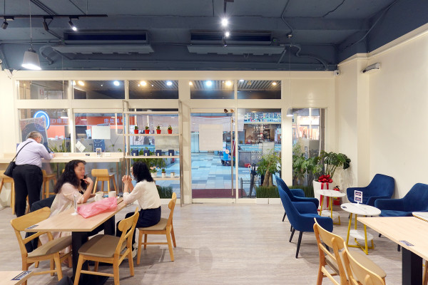 進入湯城園區後往左手邊全家那個有雨棚的商業街走,就能看到這間充滿溫馨感的空間在等著你。可集咖啡那抹質感的藍色招牌真的超級吸睛,遠遠一望就能瞬間定位,完全不用擔心會迷路。