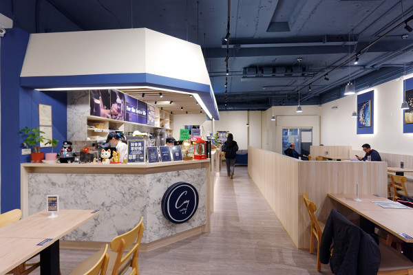 店內的裝潢配色真的很有高級感,淺木色的地板配上同色系的桌椅,視覺上非常清爽,最畫龍點睛的是那種沉穩的藍色調點綴其中,讓整個人一坐下來心境就跟著平靜了。
