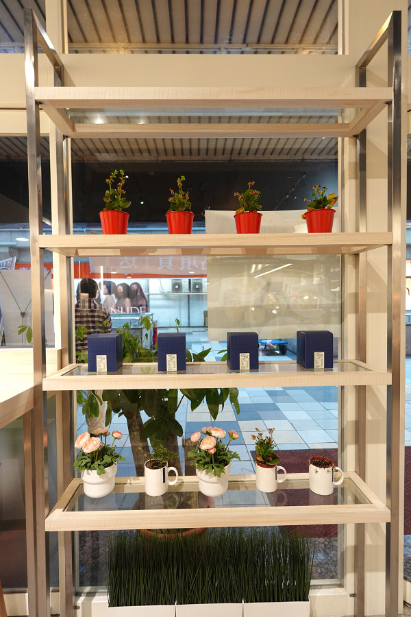 門口旁還有專門展示盒裝濾掛包咖啡的架子,上面放了綠意盎然的小盆栽點綴,看起來充滿生活美學。