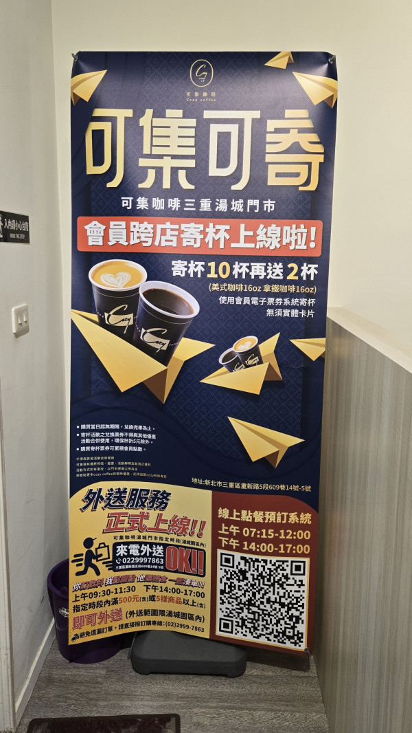 可集咖啡三重湯城門市的位置其實超方便,就在湯城園區門口的重新路上,附近還有家樂福跟 IKEA,逛完街順路過來也超近。如果你是搭捷運的人,從先嗇宮站 2 號出口走過來大約 8 分鐘就到了;若是搭公車,只要坐到「中興街口」站,隨便算一下就有 235、616、820 等 20 多路公車可以到。開車或騎車的朋友也不用在那邊繞圈圈找位子,湯城園區裡面直接就有收費停車場,省下不少找車位的時間。