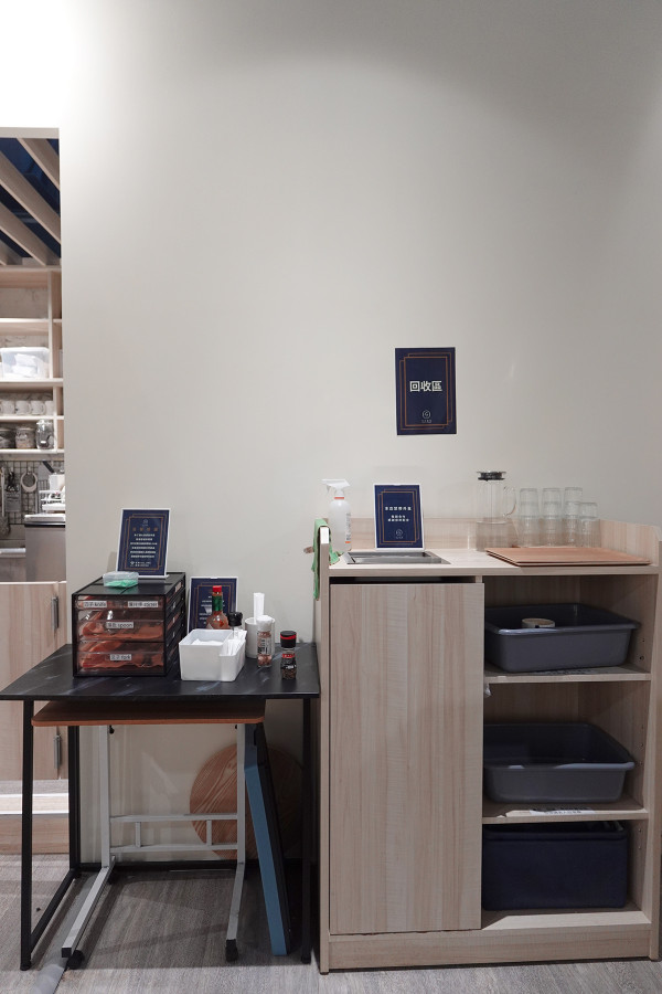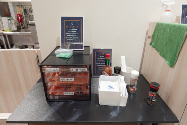 吧台後方設有自取區,不管是湯匙、叉子等餐具,還是餐巾紙、面紙、牙籤,通通都可以依照需求自己拿取。