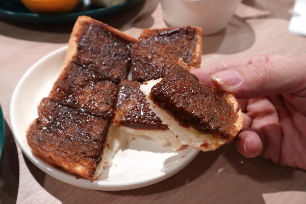 我點的那份伯爵奶茶厚片簡直是驚喜,吐司被烤得外層酥酥脆脆、內心卻保持著雲朵般的軟綿。最厲害的是上面抹得厚厚的特製醬,一入口就能感受到優雅的伯爵茶香在舌尖散開,隨後是濃郁奶香與茶韻完美融合,那種像是在吃「固態伯爵拿鐵」的層次感,甜而不膩且香氣十足,每咬一口都讓人忍不住閉上眼享受那份細緻的茶芬芳。