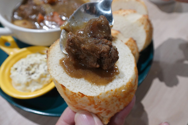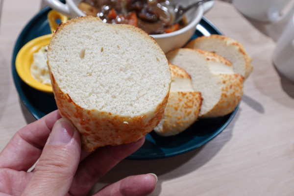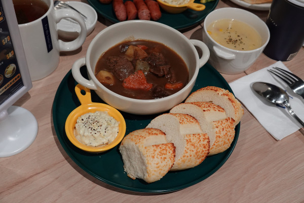 當這份口感完美的軟法麵包遇上靈魂配角法式紅酒燉牛肉,那才真的是味覺的高潮。你一定要拿麵包去吸飽當吸滿精華的軟法在嘴裡釋放出醇厚肉香與紅酒餘韻時,真的讓人有種在吃高級西餐的錯覺。