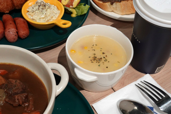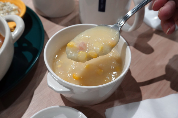 風味料理選軟法麵包的話會有蛋沙拉,所以最後只多加 39 元、選擇多一碗玉米濃湯。