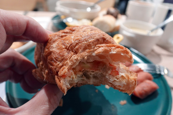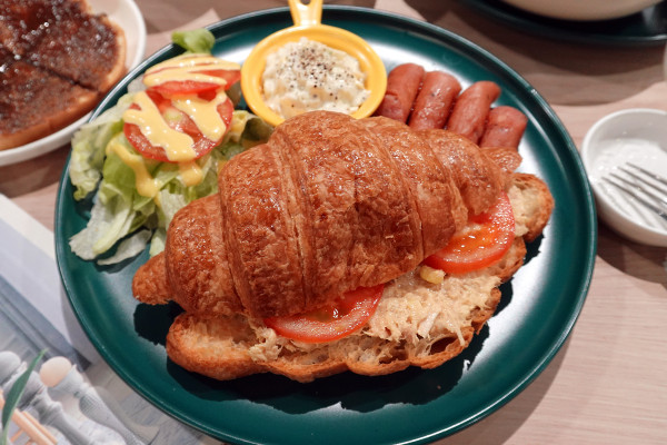 整個可頌外皮咬下去「喀滋」一聲,層次分明又酥脆,配上濕潤清爽的鮪魚沙拉,口感平衡得剛剛好。整