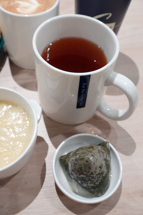 想喝茶的話,熱的桂花清烏龍會用質感馬克杯裝好,附上小碟子放茶包,入口先是清甜的桂花香,隨後烏龍的茶韻回甘,整個人都優雅了起來。
