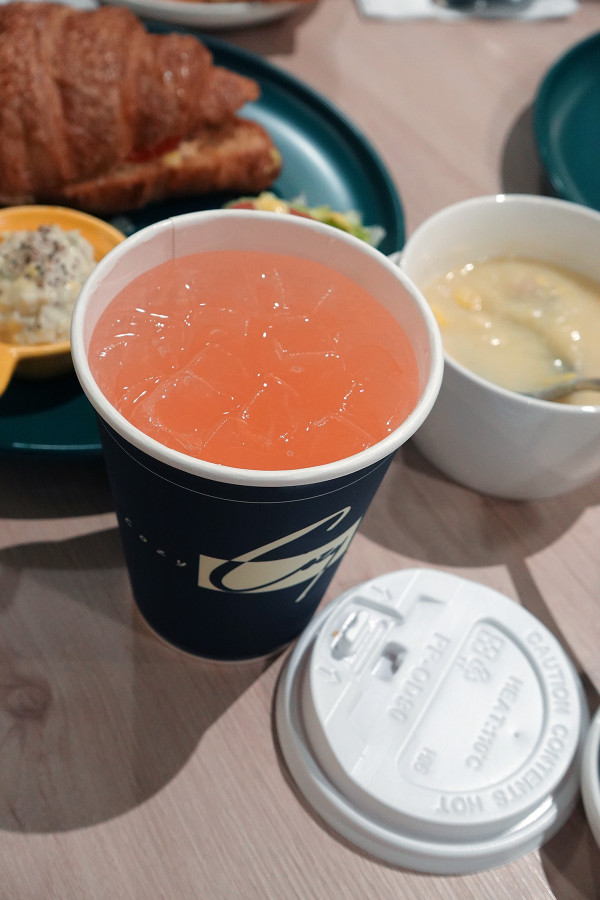 那個西南鮪魚沙拉可頌,可頌麵包裡面塗滿了厚厚一層鹹香濃郁的鮪魚肉醬,咬下去每一口都能吃到飽滿的鮪魚鮮味,完全不空虛,再搭配上酸甜番茄,那種豐盛感真的會讓人吃到滿口幸福,層次感滿分。