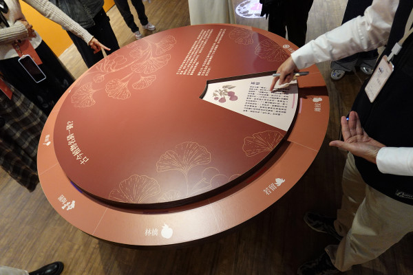 展覽中還有超好玩的互動轉盤!讓你知道古代跟現代稱呼的差異,像是古代叫「鴨腳」的其實是銀杏,「雞頭」則是芡實;日本人口中的「林檎」是蘋果。現場只要轉盤顏色對上,就能解開正確資料,玩著玩著知識就進腦袋了。