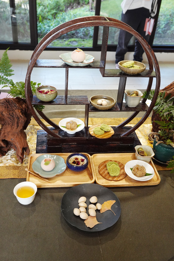 當天特別在採光極好、充滿綠意的茶藝教室安排了一場《茶宴:茶食逢茗》活動,這個環節精選了幾樣展示櫃裡的茶點、將它們真實呈現,讓我們在專業茶師的帶領下,親自品嚐這些充滿文化厚度的滋味。