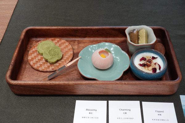 展覽的最後也帶入了一些省思。面對環境變遷,日本藝術家利用竹片、木屑等剩料做成「木麵糰」酥餅模型,甚至還有未來感的「太空茶食」。透過這些創意展示,也讓我們思考在浩瀚宇宙與自然環境中,我們扮演的角色。