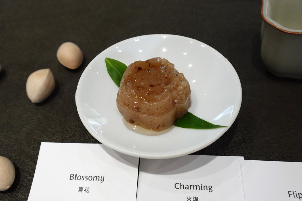 先登場的是古代茶食代表「銀杏」,因為長得像鴨蹼,古人給它一個雅致的名字。老師提醒這帶點微毒性,淺嚐即止喔!