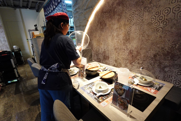 他們對衛生細節很堅持!在客人還沒入座前,桌上的餐具都會用透明蓋子蓋得好好的,連湯鍋都會特別蓋上木蓋防塵。一定要等到服務生領位、客人坐定之後,才會正式幫你把蓋子打開,這種專屬開鍋的儀式感,不只看著舒服,吃起來更是加倍安心。
