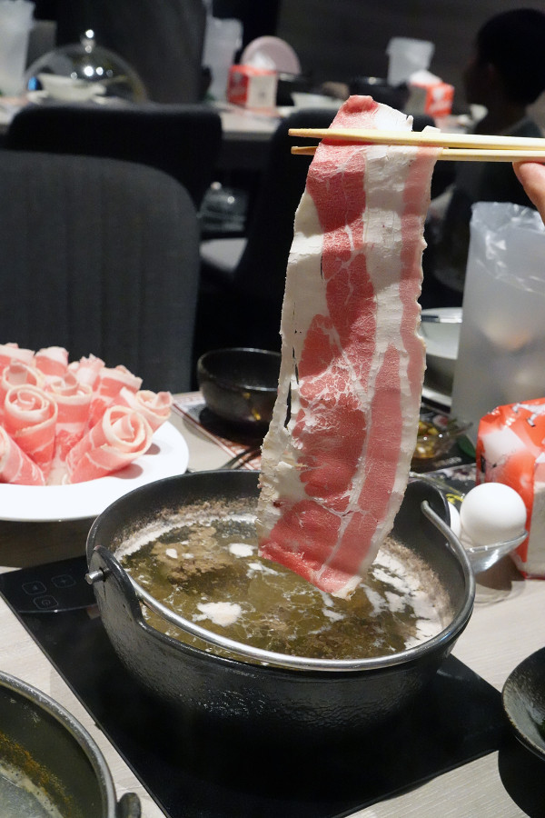 松阪豬切得厚度非常夠,下鍋涮熟後肉片依舊完整挺拔,完全不會碎掉,放進嘴裡那種大口吃肉的快感真的無敵滿足!