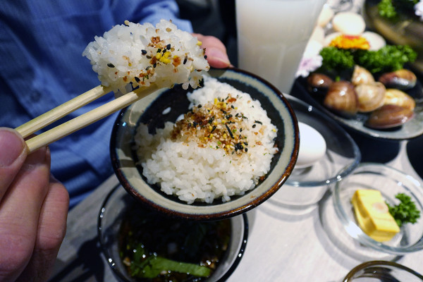 他們家的米飯那可是用老闆親自去載、產量極稀少的台東部落米,幾乎沒有在外對外供應,吃起來格外香Q有層次。撒上香蔥跟海苔絲的部落白米飯,晶瑩剔透的米粒搭配鹹香海味,單吃就讓人想再來一碗。