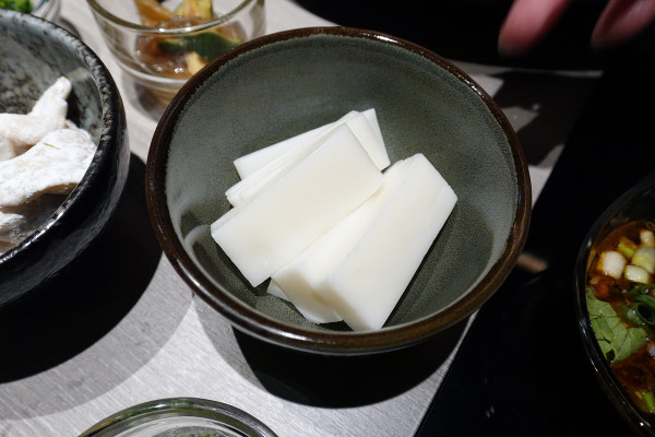 仔細研究蔬菜自助區,真的會被老闆的誠意嚇到。這裡居然提供外面吃到飽很少見的山茼蒿跟奶油白菜,要知道這些一公斤隨便都要兩三百塊!甚至連一公斤破三百元可生食的日本山藥也有,還有超特別的雞腳筋、深海魚皮、鴨腸跟大朵洋菇,這些食材的等級與鮮度,跟一般自助吧完全不是同個檔次。