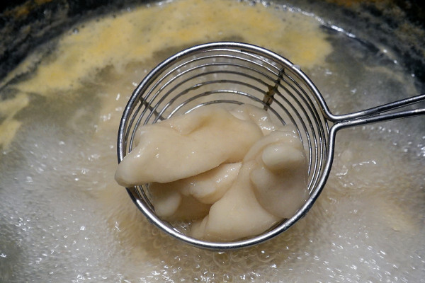 甚至還有市面上火鍋店極少見的手作麵疙瘩,據說是每天從製麵場新鮮直送的寶寶。麵疙瘩則像白胖的小枕頭,煮熟後會像水餃一樣輕輕浮上水面。